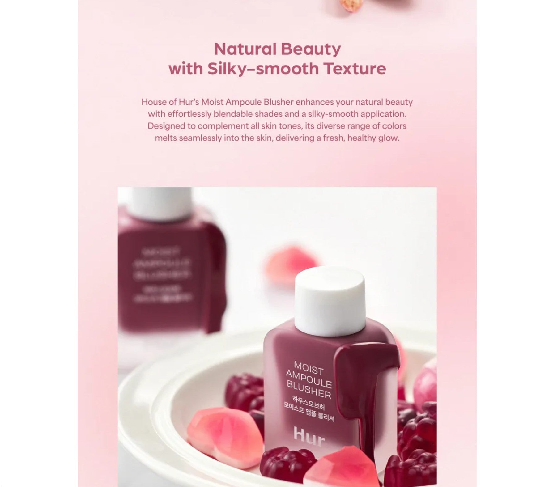 House of Hur's Moist Ampoule Blusher delivers a luminous, naturally flushed complexion with professional-grade performance. Formulated with over 50% hydrating essence, this innovative blusher nourishes skin while providing a coveted dewy finish that lasts throughout the day. The lightweight, aqueous texture blends effortlessly for customizable coverage—from subtle flush to bold color—while creating a coveted glassy, translucent effect. Its seamless adhesion ensures your color stays true without fading, making it an essential for achieving that coveted glass-skin aesthetic with hydration at its core.