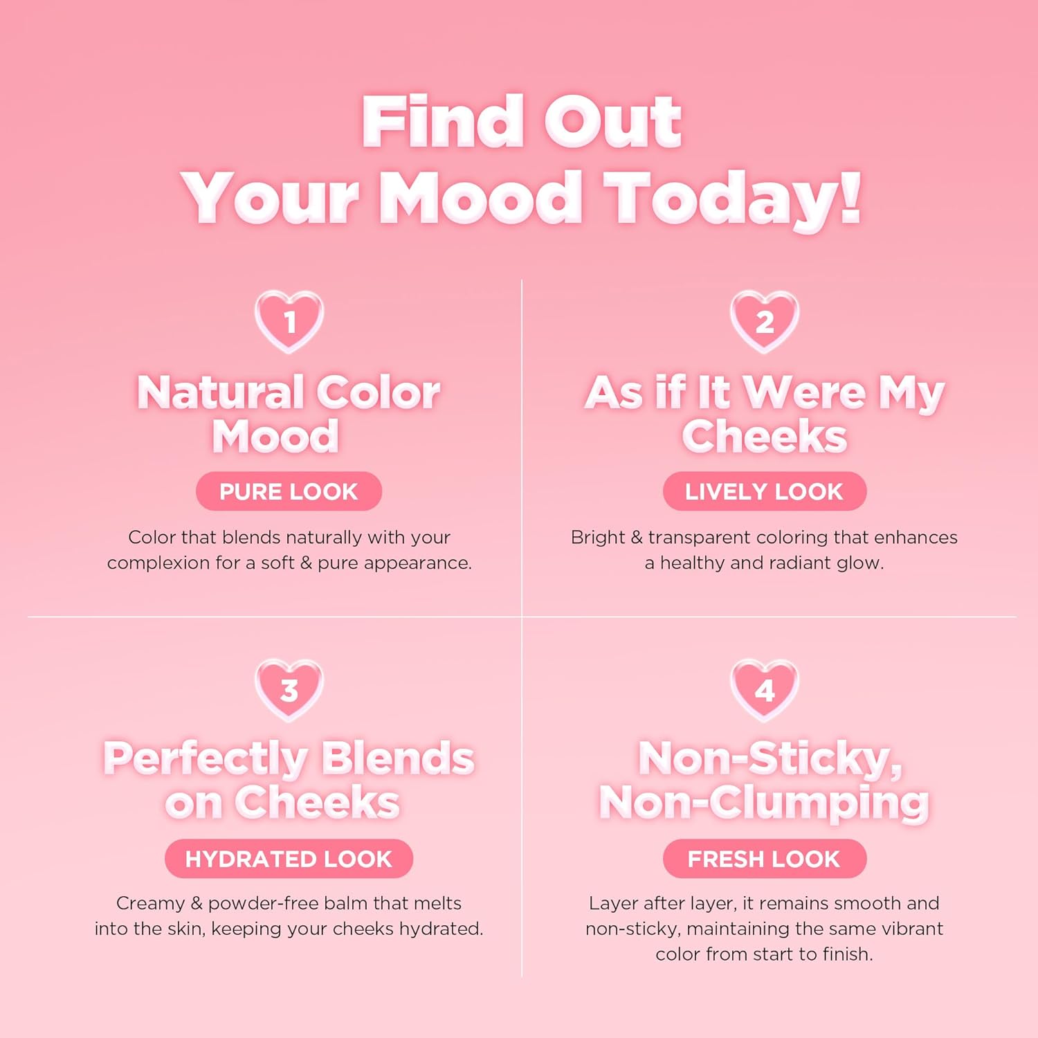 This heart-shaped cream blush delivers a gentle, adaptable color with a semi-matte finish, creating a luminous and lively glow that lasts throughout the day.