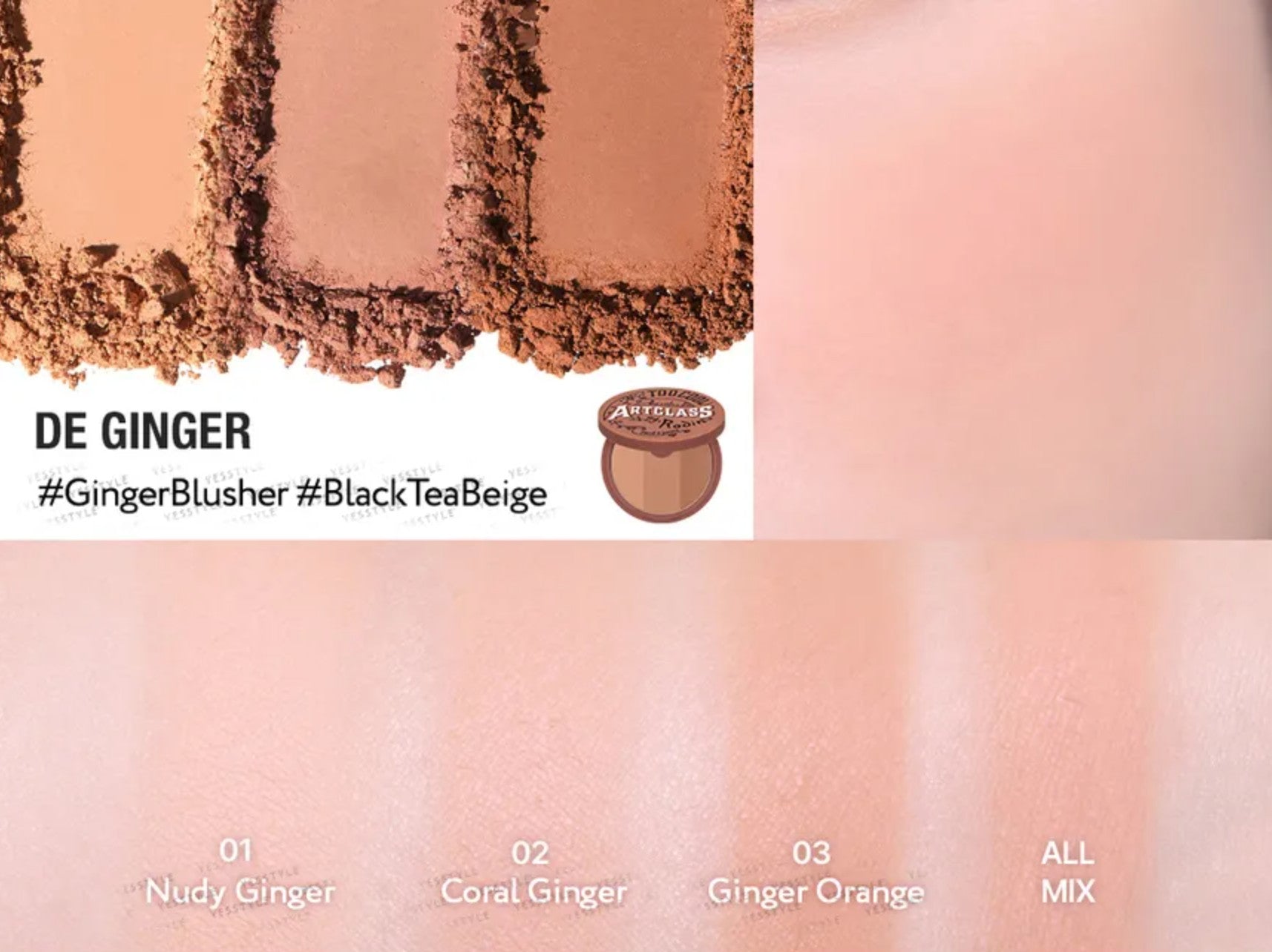 Too Cool For School Artclass By Rodin Blusher De Ginger offers a versatile 3-in-1 palette combining Nudy Ginger, Coral Ginger, and Ginger Orange tones. Apply each shade alone or mix them for a naturally luminous finish. Its silky, lightweight texture blends effortlessly, providing a soft, radiant flush that complements any makeup. The richly pigmented formula ensures long-lasting color that maintains a fresh, vibrant appearance throughout the day.